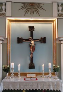Krusifikset på alteret i Vinger kirke kom på plass til første søndag i advent 2016, etter en omfattende restaurering. Det følgende er en omtale som ble laget i den forbindelse: